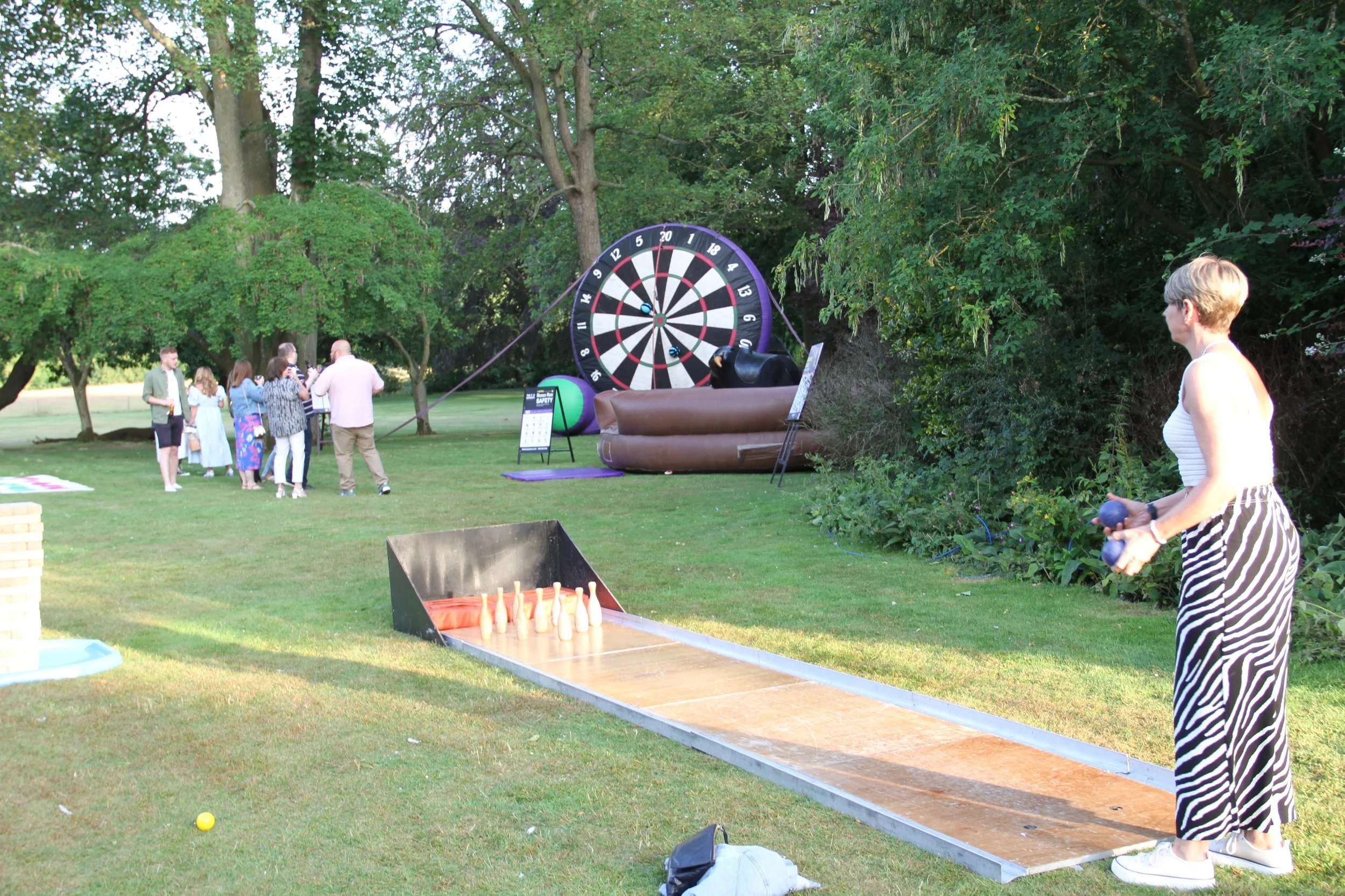 To achieve this, a typical British summer party concept was curated. It featured a picturesque setting in a secret garden with a stretch tent, festoons, bar, disco, rodeo bulls, and garden games, providing a vibrant and entertaining atmosphere.